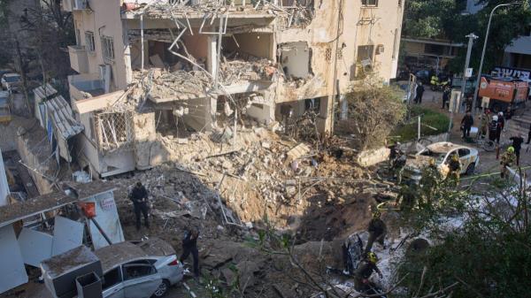 在特拉维夫,一枚携带220磅弹头的导弹击中市中心街道,炸毁公寓楼的窗户,浓烟滚滚。救援人员约埃尔·摩西称,四人受轻伤。